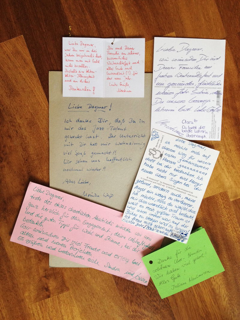 Danke für die vielen intensiven schönen Unterrichtsstunden und die gemeinsame Begeisterung für guten Gesang und Musik.
